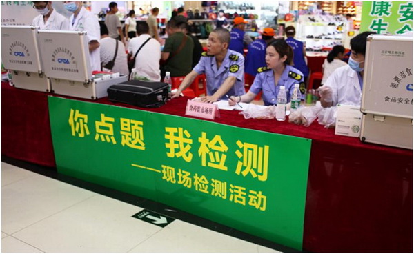 在活動現場,各職能部門工作人員不僅宣講了飲食安全對身體健康的重要性,還通過現場試驗讓市民更加直觀地看到蔬菜中的農藥殘留物質。