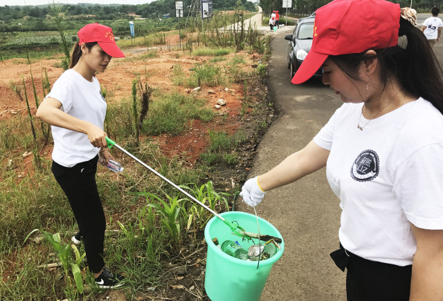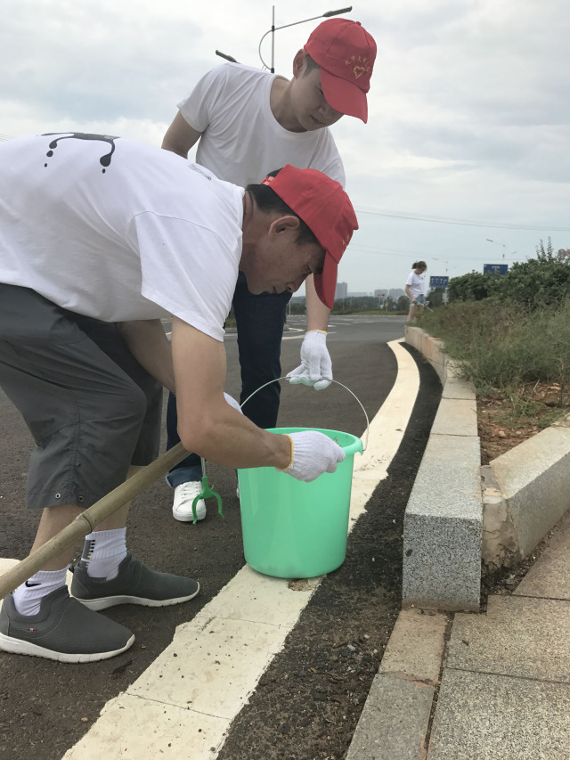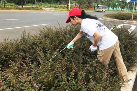 大家領取清潔工具后,便開始對責任區域的房前屋后衛生、綠化帶煙蒂、檳榔渣、白色垃圾等進行清理打掃。